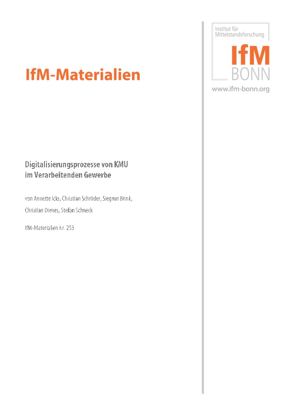 IfM-Materialien | 2017 Digitization processes of SMEs in manufacturing industry