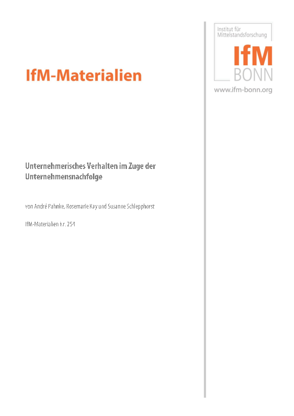 IfM-Materialien | 2017 Entrepreneurial behavior in the course of company succession