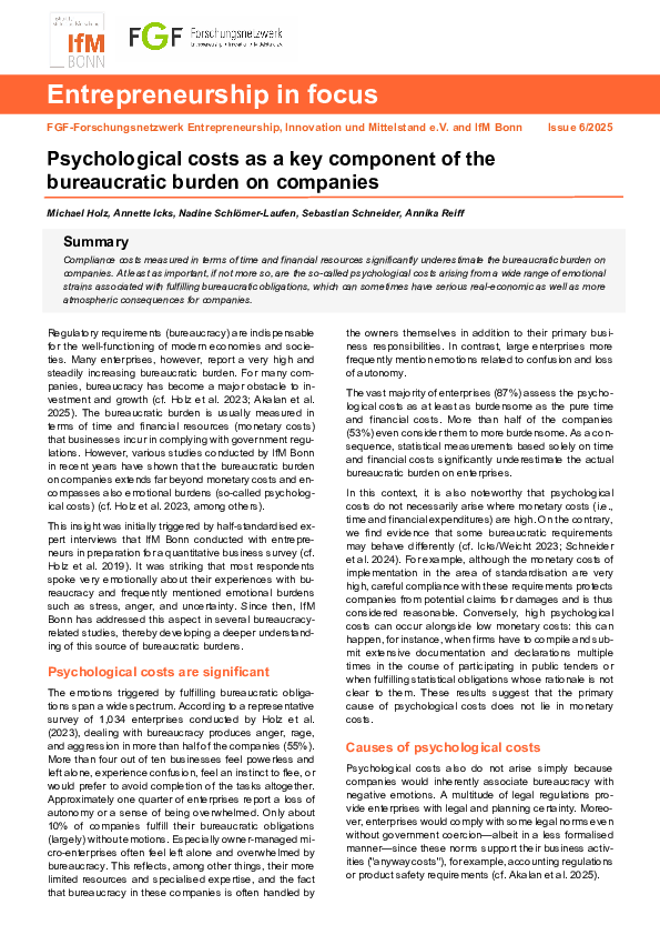 Policy Brief "Entrepreneurship in Focus" | 2025 Psychological costs as a key factor in the bureaucratic burden on businesses