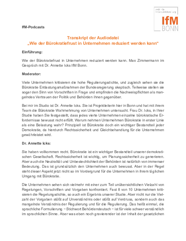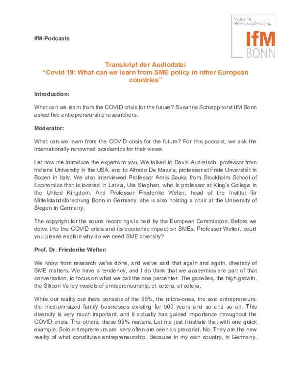Transkript zum IfM-Podcast: "Mittelstand, Klimaschutz und Digitalisierung. Welche Rolle spielt die Ordnungspolitik bei den aktuellen Herausforderungen?"