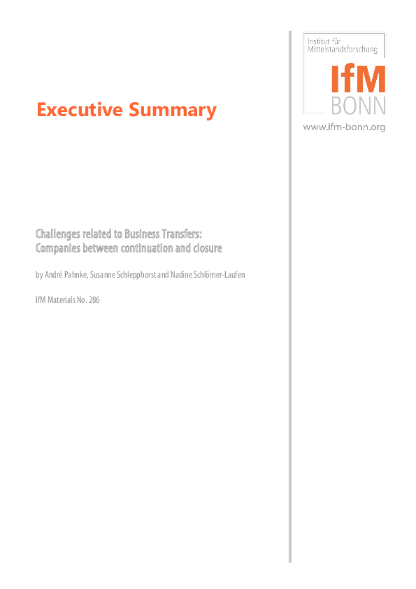 IfM-Materialien | 2021 Challenges related to Business Transfers: Companies between continuation and closure