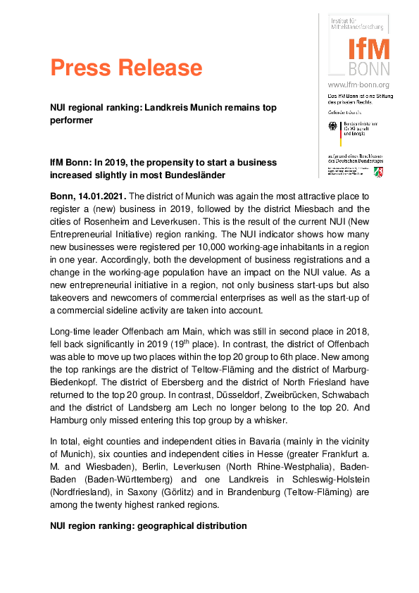 Policy Brief "Entrepreneurship in Focus" | 2021 The (underestimated) potential of craft roll data for start-up and SME research