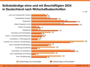 Laut Mikrozensus gab es im Jahr 2024 in Deutschland etwa 3,6 Millionen Personen, die in ihrer (Haupt-)Erwerbstätigkeit einer selbstständigen Tätigkeit nachgingen.
