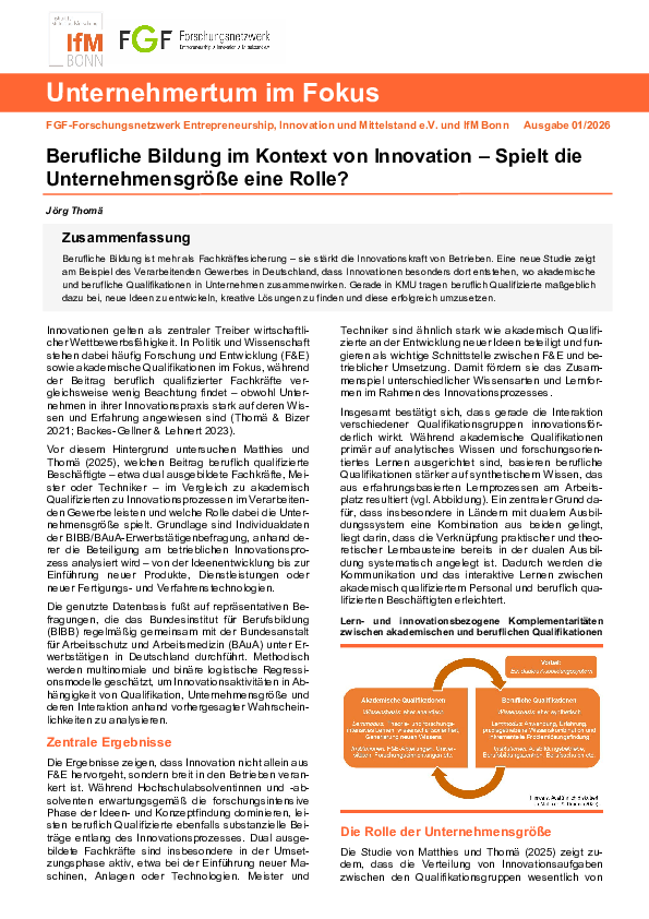 Policy Brief "Unternehmertum im Fokus" | 2026 Berufliche Bildung im Kontext von Innovation - Spielt die Unternehmensgröße eine Rolle