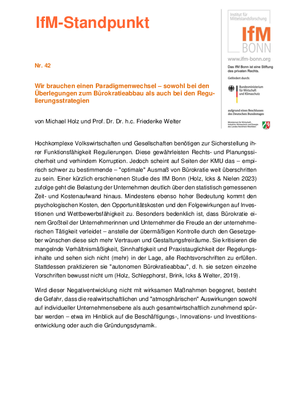 Policy Brief "Unternehmertum im Fokus" | 2024 Paradigmenwechsel für spürbaren Bürokratieabbau