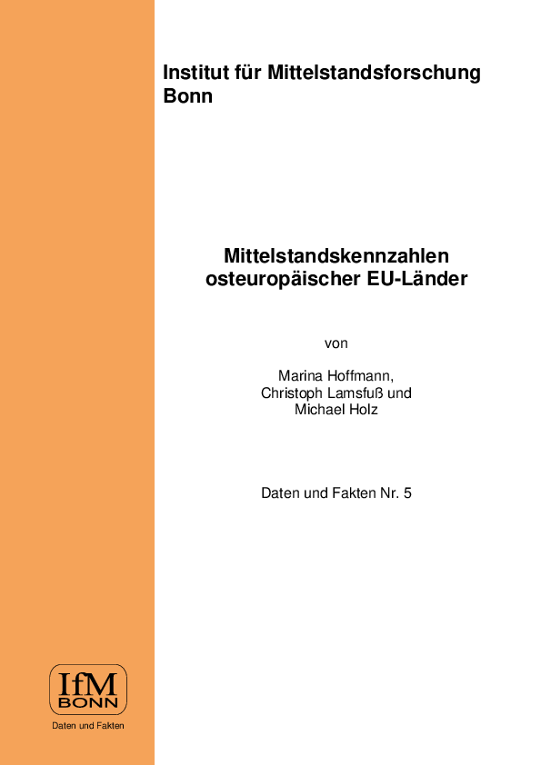 Hoffmann, M.; Holz, M.; Lamsfuß, C. (2012): Mittelstandskennzahlen osteuropäischer EU-Länder, in: IfM Bonn (Hrsg.): Daten und Fakten Nr. 5, Bonn.
